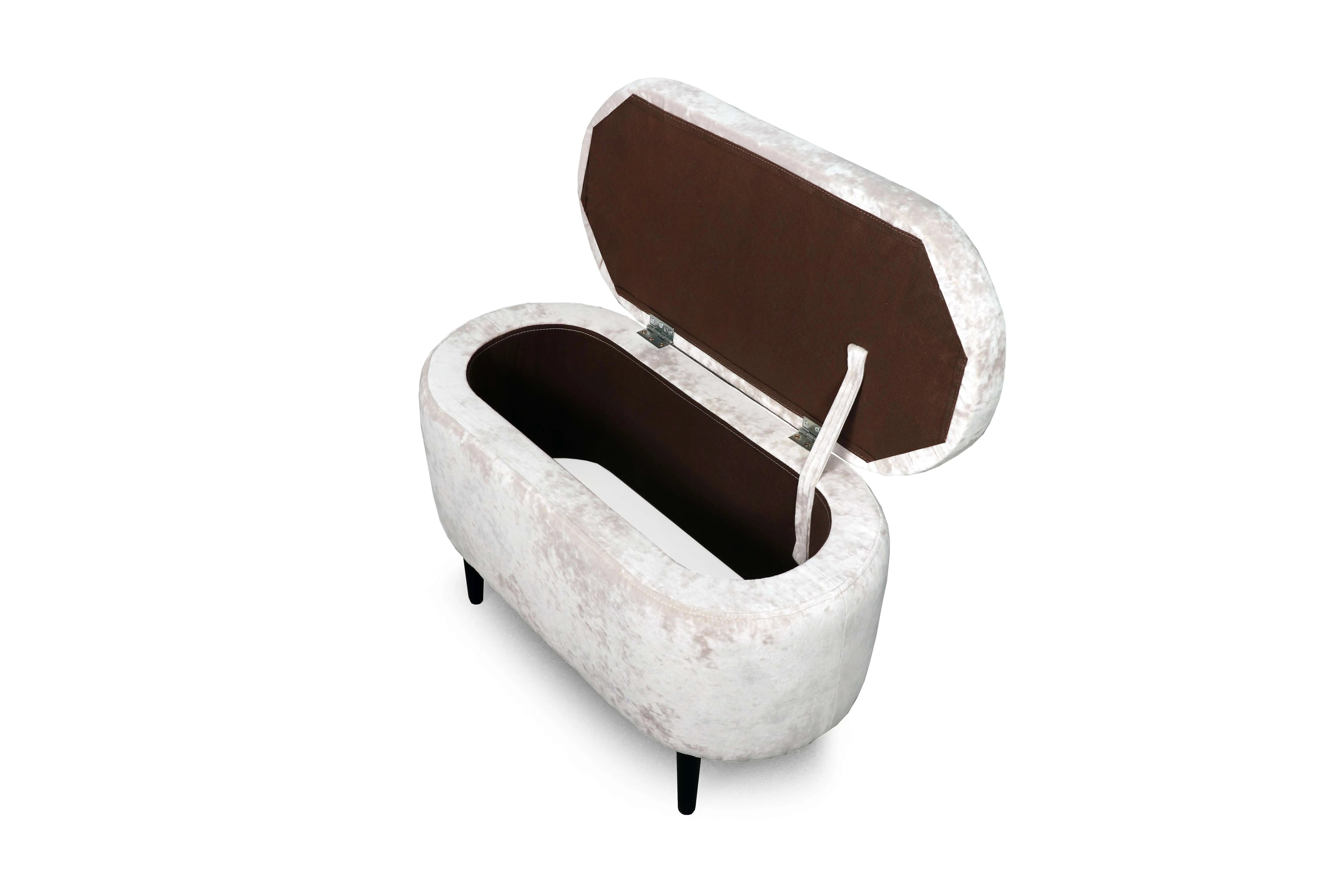 Мягкая обивка в ткани велюр с краш-эффектом добавляет приятный объем и украшает изделие. Опоры выполнены из массива берёзы и имеют защитные войлочные наклейки. Банкетка хороша не только в гостиной, но и в спальне, на кухне и в детской комнате. Максимальная нагрузка 100 кг.