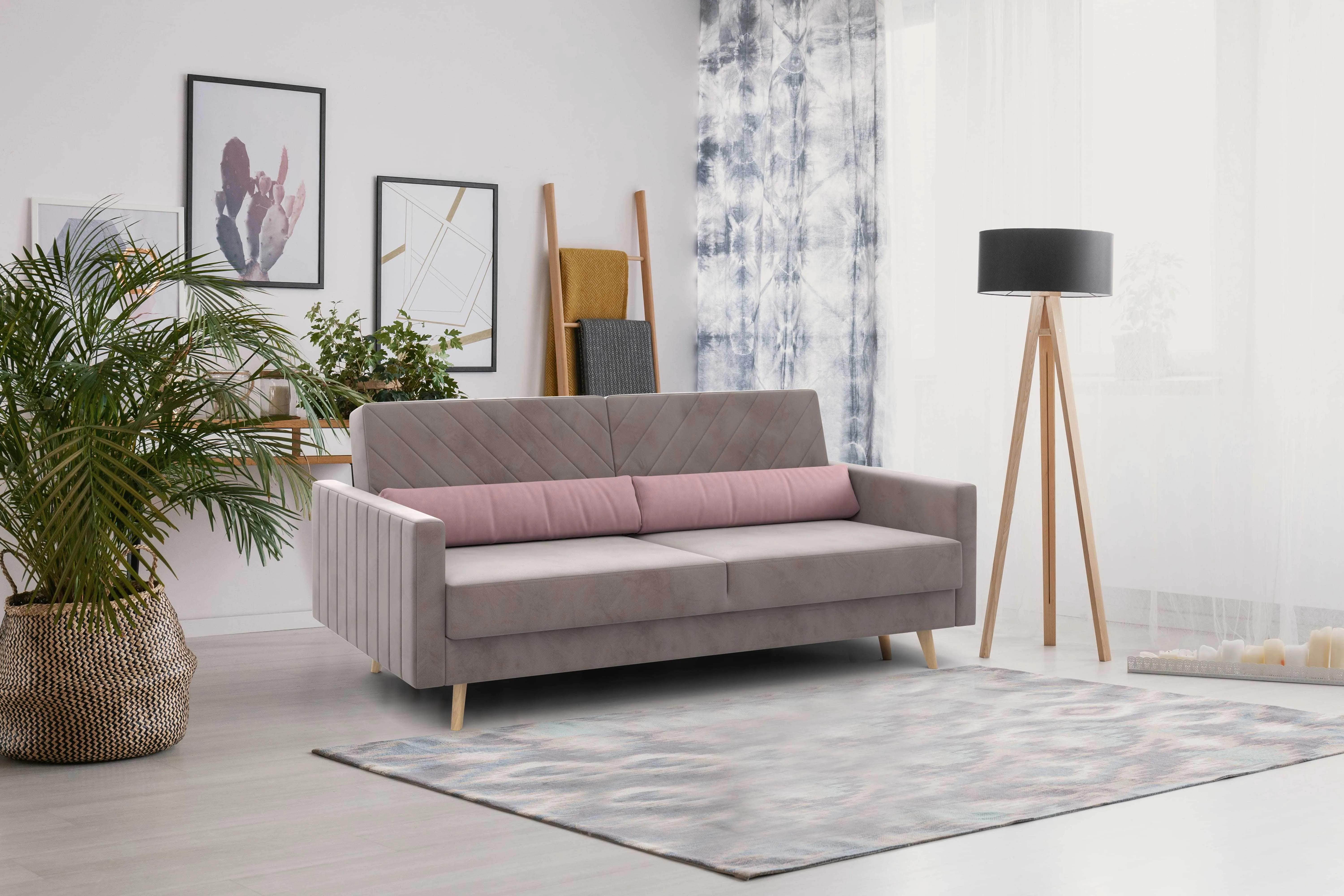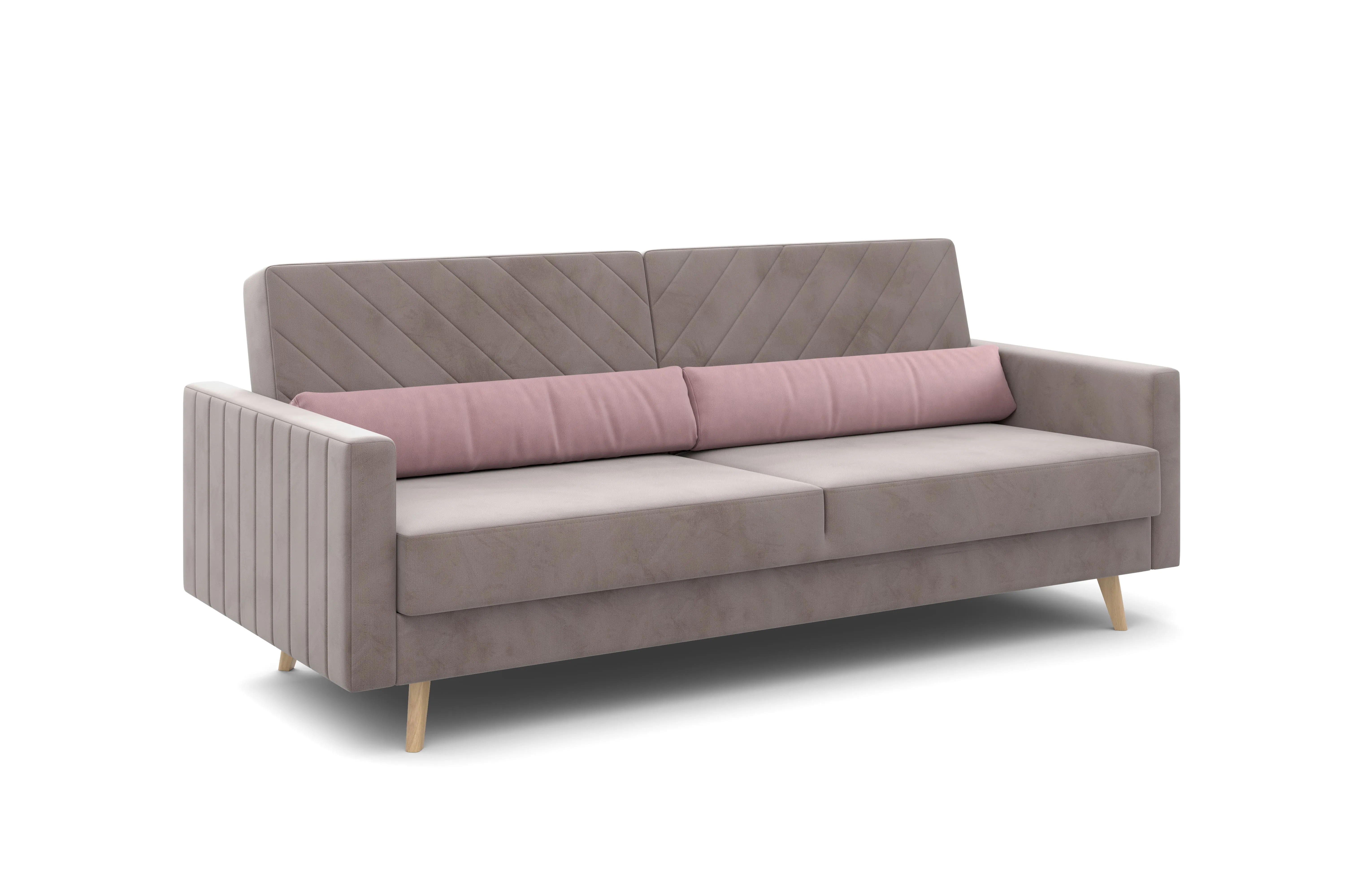 Обивка из велюра не только роскошно выглядит, но еще и практична в эксплуатации, а также имеет отличные показатели износоустойчивости.Высокие опоры из массива березы придают дивану визуальную лёгкость, декоративная отстрочка на подушках и боковинах придают приятный объем. Подушки из велюра контрастного цвета входят в комплект.