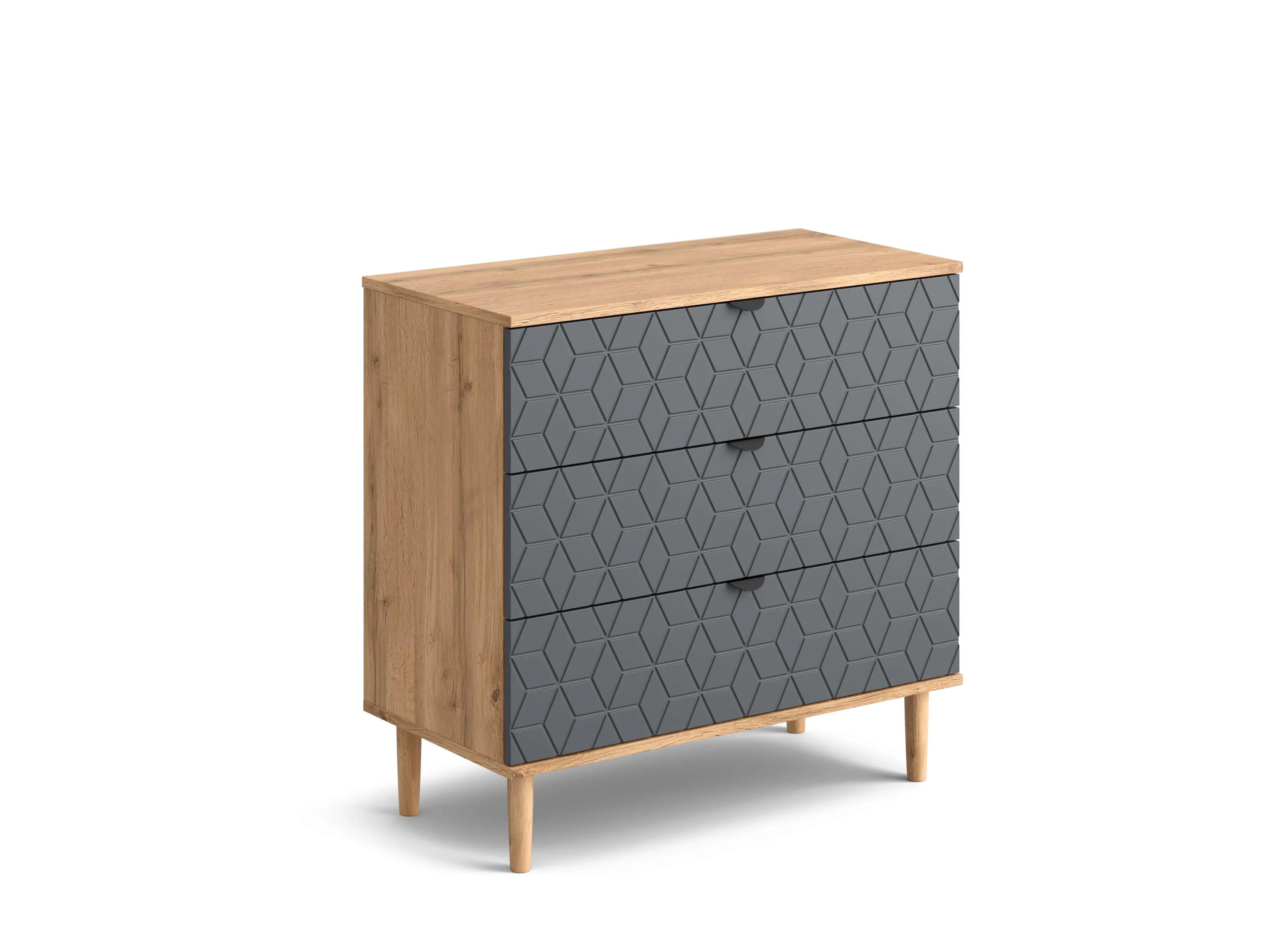 Комод имеет три вместительных выдвижных ящика на шариковых направляющих, в которых удобно хранить белье, одежду, аксессуары.