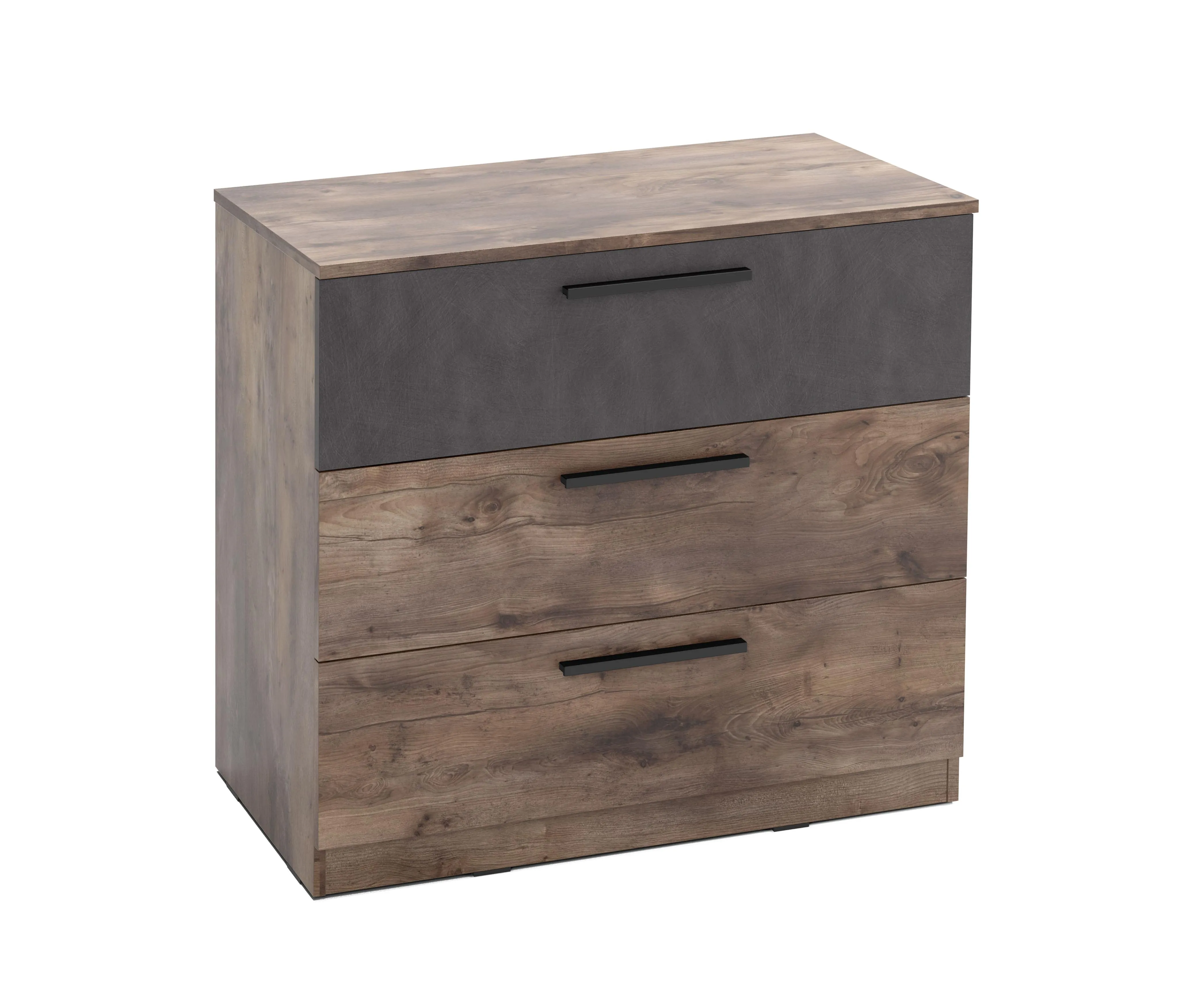 Комод "Глазго" имеет три вместительных выдвижных ящика на шариковых направляющих, позволит обеспечить удобное хранение ваших любимых вещей.