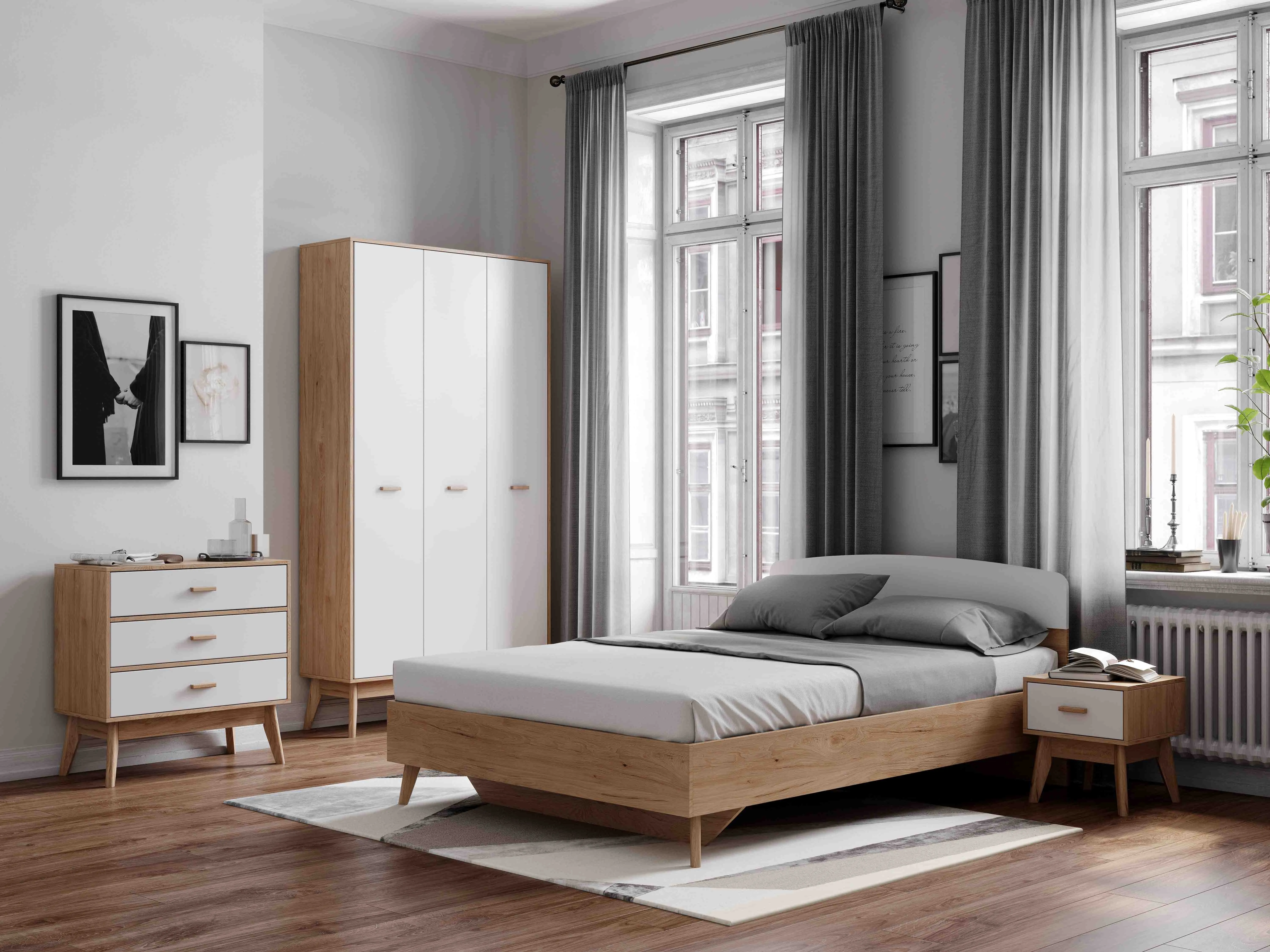 <virtues>Комод приобретался вместе со спальней Калгари. Очень функционален, ничего лишнего. Выполнен в модном сейчас стиле Сканди. За счет высоких ножек из массива дерева и белых фасадов из МДФ смотрится легко, не загромождает пространство. Весьма практичный, вмещает много вещей. Ящики открываются плавно. Покупкой довольна.</virtues> <limitations>нет</limitations>