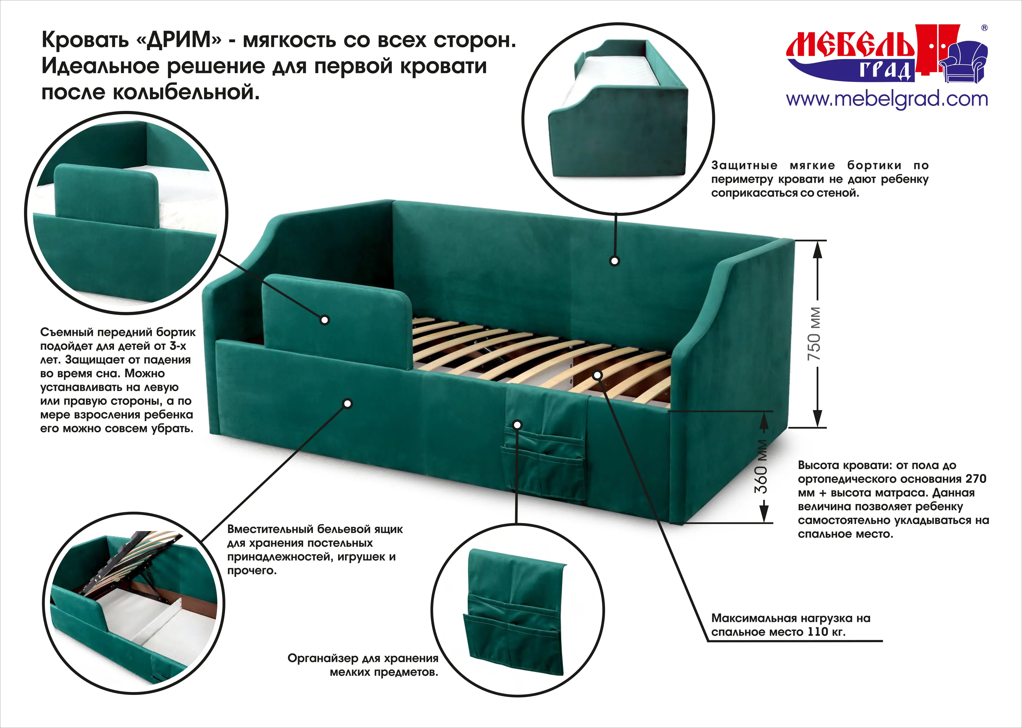 Защитный бортик "Дрим" СТАНДАРТ, Органайзер для хранения "Дрим" СТАНДАРТ