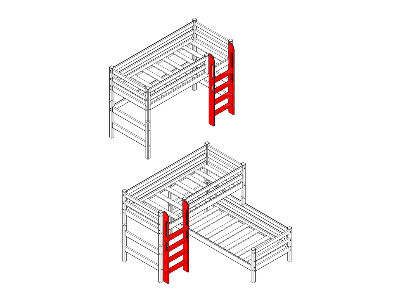 Пакет №7. Прямая лестница для полувысокой кровати “Соня” обеспечивает легкий и безопасный доступ к кровати, помогая ребенку чувствовать себя уверенно и комфортно.