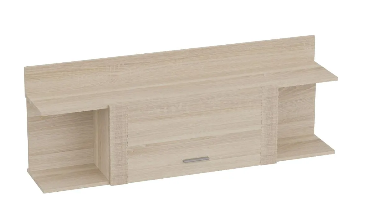 В полке имеются две боковые открытые ниши и центральная, закрытая дверцей. Дверца открывается вверх и удерживается в этом положении с помощью газовых кронштейнов.