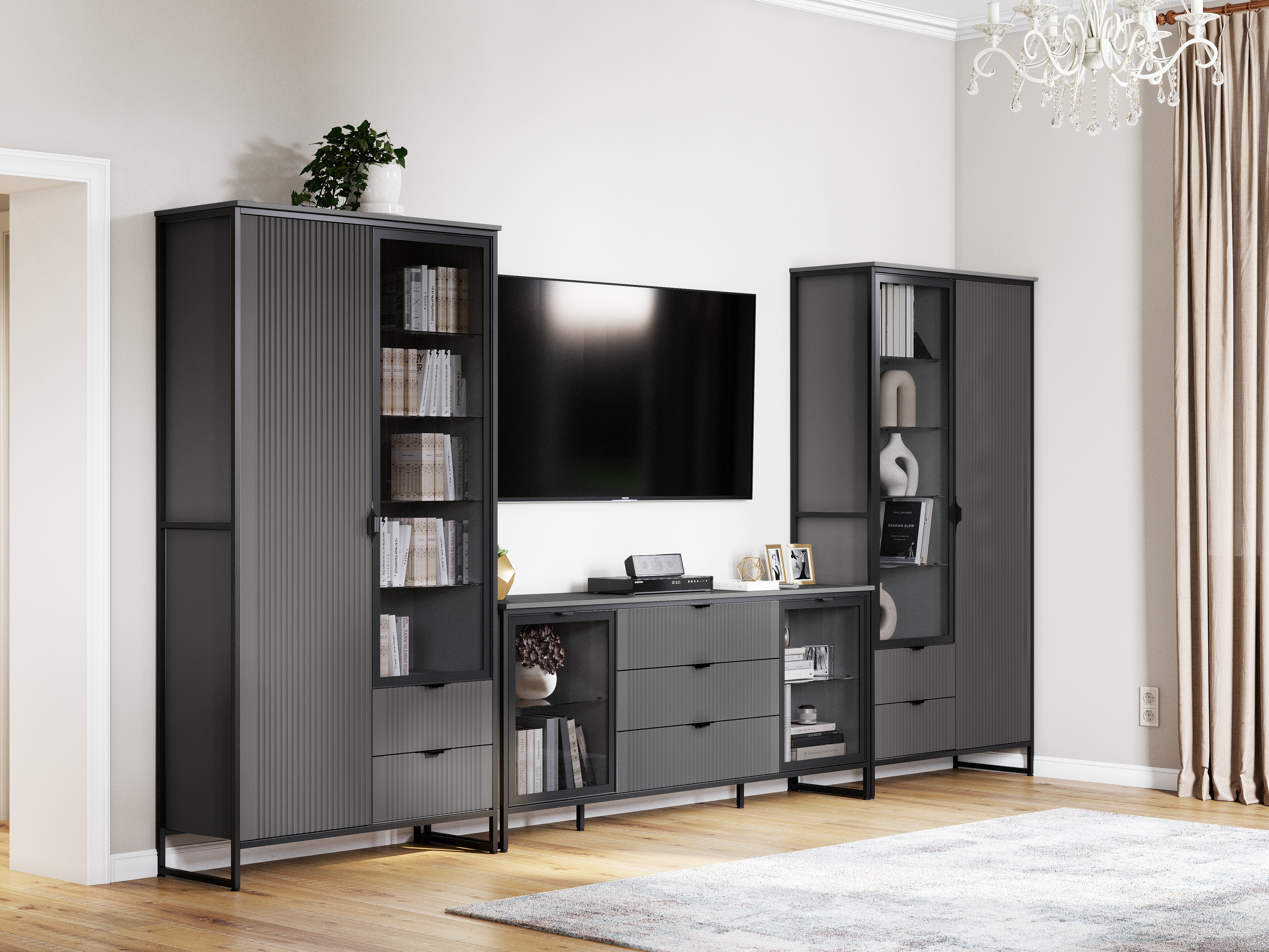 Шкаф 2 дв 2 ящ "Нора" гостиная Графит