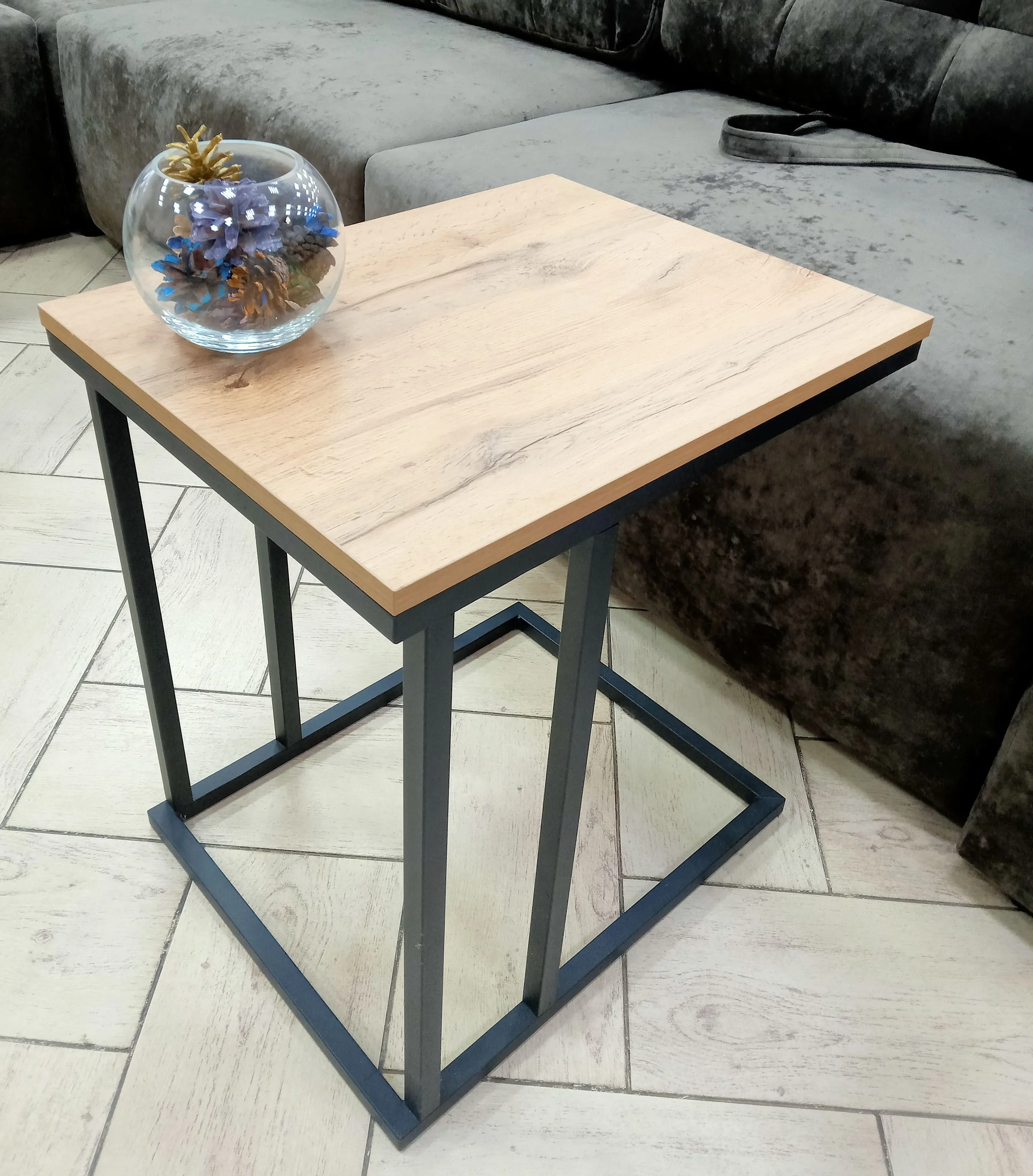 <virtues>Покупала в цвете Дуб Каньон, высота 650 мм. Очень удобный, без него теперь даже не представляю свой интерьер. В основном, всегда придвинут к дивану, но когда есть гости, можно поставить и в прихожую как доп.столик для вещей, и к праздичному столу, для закусок или напитков, которые не поместились. На металлокаркасе, но не тяжелый, легко двигается благодаря войлочным накладкам на ножках. Собирала сама, затруднений сборка не вызвала. Цвет красивый, серо-бежевый, подойдет практически к любому ламинату и цвету мебели. Рекомендую к покупке.</virtues> <limitations>Нет</limitations>