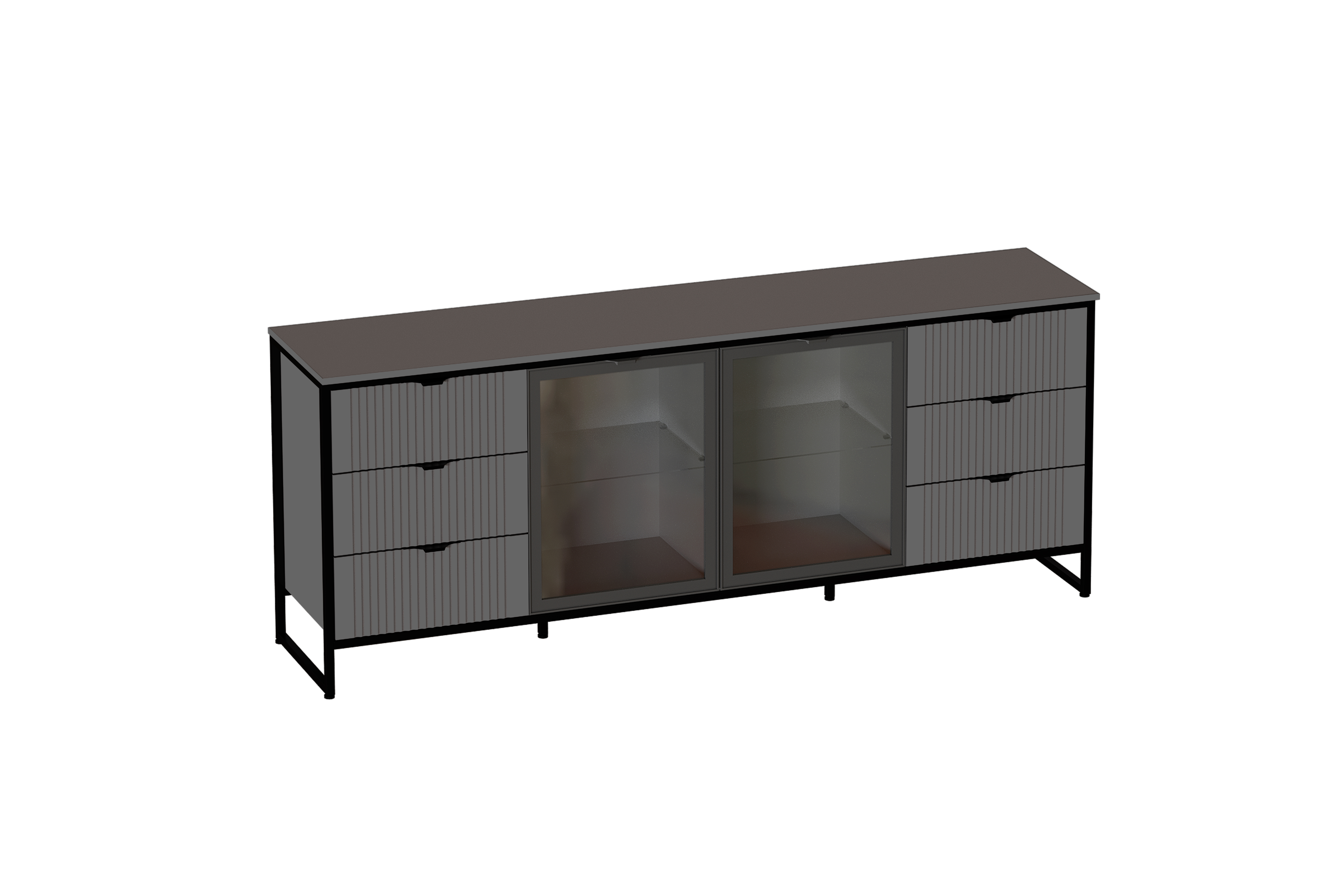 Коллекцию модульной гостиной "Нора" отличает современный оригинальный стиль. Декоративная продольная фрезеровка на фасадах из МДФ и опоры на металлокаркасе цвета соответствуют модным тенденциям этого года в ведущих зарубежных коллекциях.