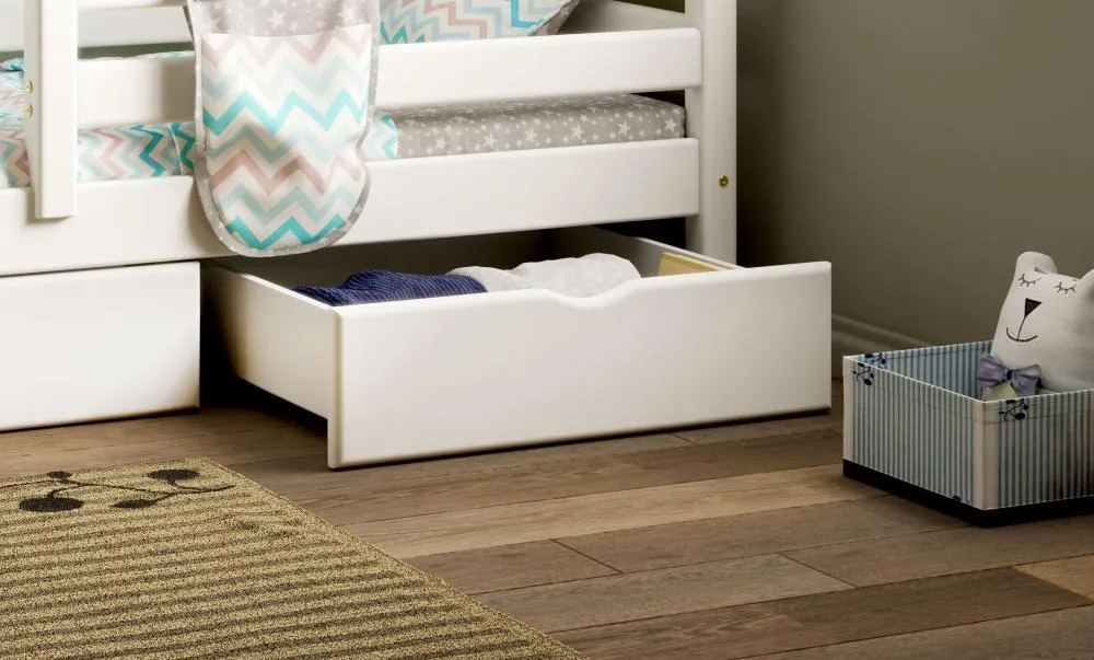 Проблема разбросанных по ковру игрушек также останется в прошлом: куклы, машинки, недостроенный замок из LEGO на ночь отправятся в бокс, а утром ребенок сможет легко выкатить его и продолжить игру. Фасад из массива сосны отшлифован до гладкости, в его центральной части имеется выемка для захвата рукой.
